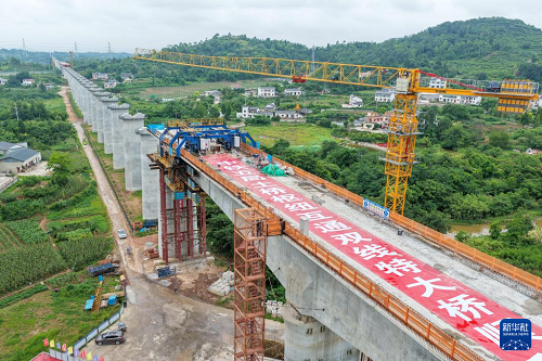 7月8日,由中鐵五局承建的成渝中線高鐵土橋樞紐互通雙線特大橋連續(xù)梁順利合龍,該連續(xù)梁全長(zhǎng)約242米,是成渝中線高鐵重慶段跨度最大的連續(xù)梁。土橋樞紐互通雙線特大橋位于重慶市銅梁區(qū),全長(zhǎng)3271.6米,上跨重慶三環(huán)高速及銅安高速公路,共設(shè)有92個(gè)橋墩,2個(gè)橋臺(tái)。