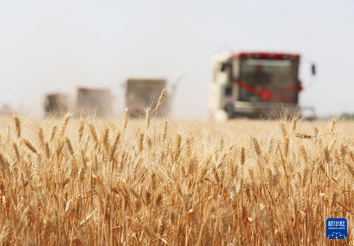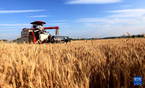 6月10日,河北省石家莊市欒城區(qū)柳林屯鄉(xiāng)東牛村村民駕駛農(nóng)機收割小麥。(新華社發(fā) 梁子棟 攝)