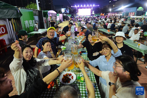7月20日,在第35屆青島國際啤酒節(jié)嶗山會(huì)場(chǎng),游客享受啤酒節(jié)夏夜狂歡。(新華社發(fā) 王海濱 攝)