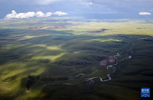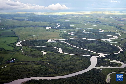 內(nèi)蒙古呼倫貝爾草原上的河流(7月29日攝,手機(jī)照片)。(新華社記者 賈立君 攝)