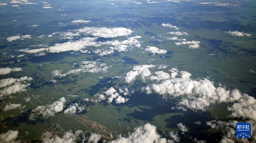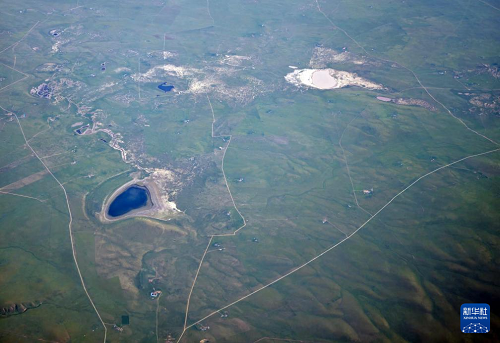 內(nèi)蒙古錫林郭勒草原上的湖泊(7月29日攝,手機(jī)照片)。(新華社記者 賈立君 攝)