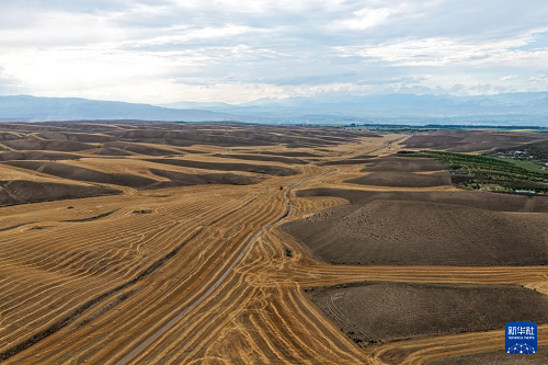 近日,在位于天山北麓的新疆維吾爾自治區(qū)伊犁哈薩克自治州特克斯縣,成熟的小麥迎來(lái)收獲。當(dāng)?shù)剞r(nóng)民搶抓有利天氣,開(kāi)展夏收工作。