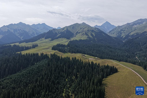 這是8月2日在庫爾德寧拍攝的雪嶺云杉(無人機照片)。(新華社記者 趙宇思 攝)