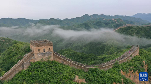 8月4日清晨,位于河北省承德市灤平縣的金山嶺長城云霧繚繞,景美如畫。