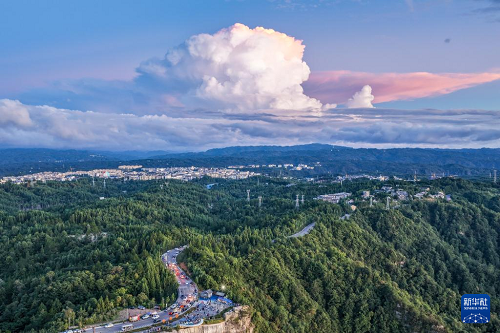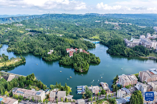 這是8月21日拍攝的重慶市石柱縣黃水鎮(zhèn)景色(無人機照片)。(新華社記者 唐奕 攝)