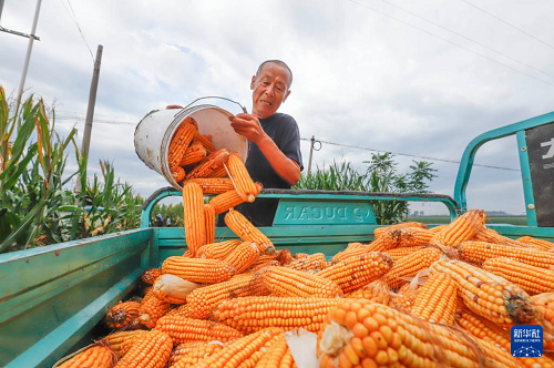 8月23日,河北省玉田縣虹橋鎮(zhèn)農民在收獲玉米。(新華社發(fā) 劉滿倉 攝)