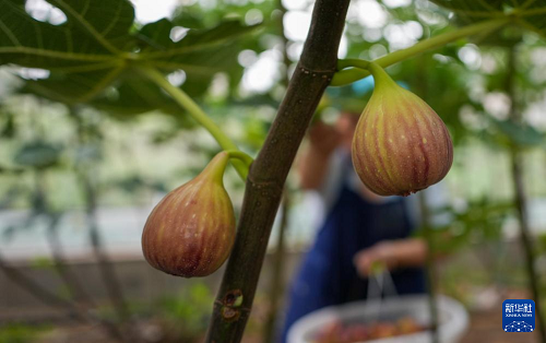 8月24日在新泰市龍廷鎮(zhèn)拍攝的進入收獲期的無花果。(新華社記者 徐速繪 攝)