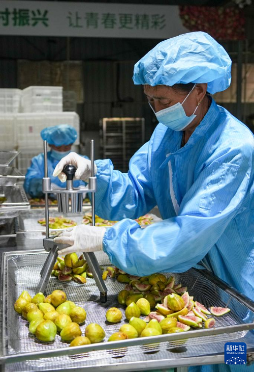 8月24日,在新泰市龍廷鎮(zhèn),一家食品加工企業(yè)的工作人員在生產(chǎn)加工無花果果干。(新華社記者 徐速繪 攝)