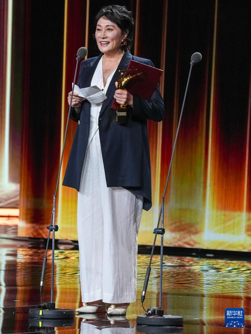 8月28日,在第二十屆中國長春電影節(jié)閉幕式上,《小小的我》主演林曉杰獲金鹿獎最佳女演員獎。(新華社記者 張楠 攝)