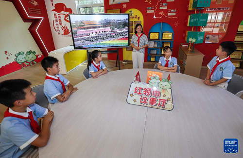 9月4日,浙江省“新時代好少年”、資深紅船小講解莫景鑠(左一)在嘉興市實驗小學給新一批紅船小講解員傳授自己的講解經(jīng)歷和經(jīng)驗,同時也介紹了學校紅船小講解的歷史由來。(新華社記者 徐昱 攝) 新學期伊始,浙江省嘉興市南湖區(qū)各中小學開啟形式多樣的以紅色教育為主題的“開學第一課”。各校組織師生觀看紀念中國人民抗日戰(zhàn)爭暨世界反法西斯戰(zhàn)爭勝利80周年大會,同時開展紅色故事宣講、紅色課堂、詩朗誦、新四軍老戰(zhàn)士抗戰(zhàn)事跡圖片展等活動,帶領學生重溫烽火歲月、感悟偉大抗戰(zhàn)精神,讓紅色基因深植青少年的心田,激發(fā)愛國情懷與民族自豪感。 (責任編輯:蔡文斌) |