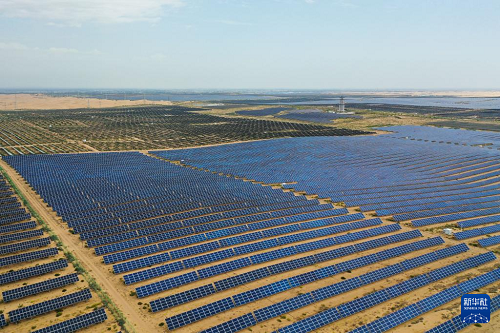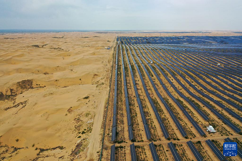 內(nèi)蒙古鄂爾多斯市達(dá)拉特旗境內(nèi)的庫布其沙漠里,一塊塊藍(lán)色光伏板鱗次櫛比、鋪陳排開,將沙海變成綠能涌動的“藍(lán)?!?。近年來,達(dá)拉特旗依托光伏基地建設(shè),推廣應(yīng)用“光伏治沙”模式,實(shí)現(xiàn)光伏板上發(fā)綠電,板下治理沙漠生態(tài),既帶動新能源產(chǎn)業(yè)發(fā)展,也促進(jìn)庫布其沙漠治理。