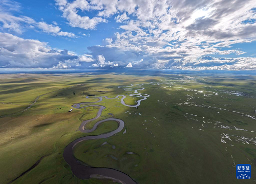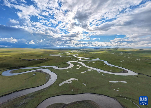 9月14日拍攝的內(nèi)蒙古呼倫貝爾市陳巴爾虎旗草原上的莫爾格勒河(無(wú)人機(jī)照片)。(新華社記者 貝赫 攝)