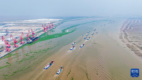 9月16日,在江蘇省鹽城市射陽(yáng)縣,近千艘漁船起航展開捕撈作業(yè)(無(wú)人機(jī)照片)。(新華社發(fā) 彭嶺 攝)