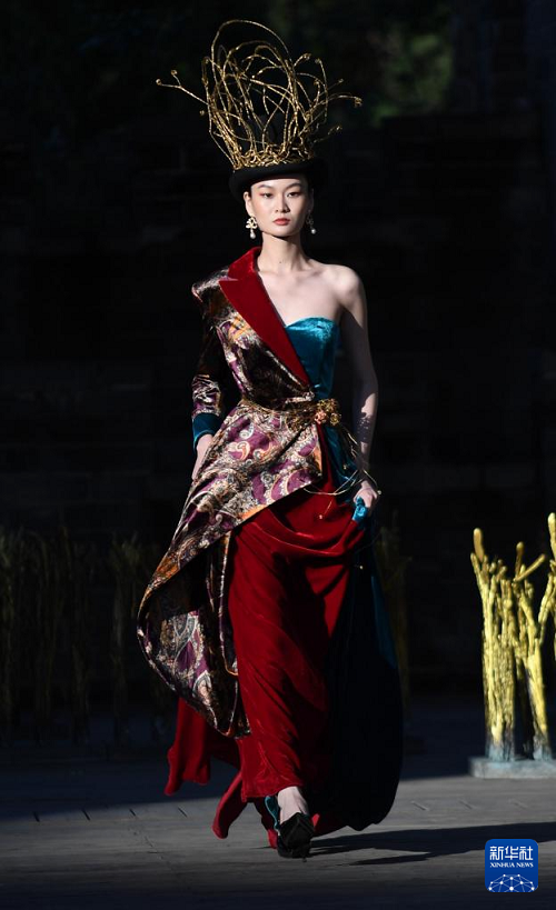 9月17日,模特在閉幕秀上展示朱炳仁設(shè)計(jì)的服飾。(新華社記者 魏海 攝)