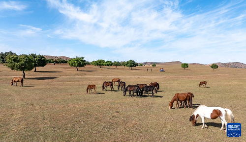 9月27日拍攝的興安盟科爾沁右翼中旗五角楓生態(tài)旅游景區(qū)秋景(無人機照片)。(新華社記者 貝赫 攝)