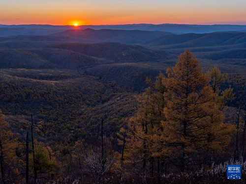 這是9月28日在內(nèi)蒙古呼倫貝爾市牙克石市綽河源鎮(zhèn)拍攝的大興安嶺林海日出。(新華社記者 馬金瑞 攝)