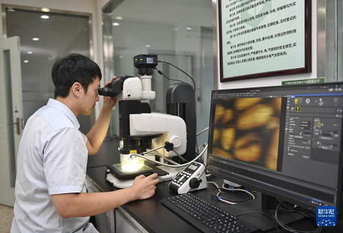 10月15日,在中儲(chǔ)糧成都儲(chǔ)藏研究院有限公司,科研人員進(jìn)行蟲害防治相關(guān)試驗(yàn)。(新華社記者 劉坤 攝)