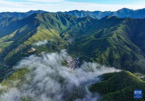 10月16日,秋雨初歇的安徽省黃山市黟縣宏村鎮(zhèn)木坑竹海景區(qū)云海涌動,縈繞于漫山竹林之中,鱗次櫛比的徽派民居與流動的云霧交織,宛若詩意仙境。