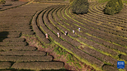 1月5日,茶農在云南省普洱市寧洱哈尼族彝族自治縣寧洱鎮(zhèn)般海村管護茶園(無人機照片)。(新華社發(fā) 楊廷榮 攝)