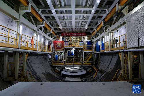 1月6日,“深江1號”盾構(gòu)機(jī)在珠江入海口海平面下掘進(jìn)。(新華社記者 毛思倩 攝)