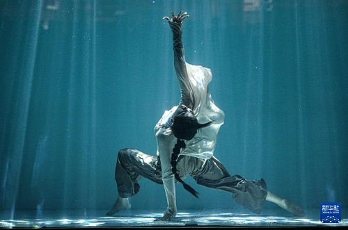 1月14日,舞者在2026中國極限舞蹈表演賽期間進(jìn)行水下舞蹈表演。(新華社記者 蒲曉旭攝)