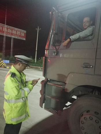 2017年6月23日晚九大隊(duì)民警在五臺山景區(qū)收費(fèi)站開展了對“酒后駕駛,涉牌涉證,客運(yùn)車輛超員,公路客運(yùn)車輛違反夜間管控規(guī)定行駛,重型半掛車不按規(guī)定車道行駛”的集中整治,大隊(duì)民警按照統(tǒng)一部署,嚴(yán)格執(zhí)法,以實(shí)際行動(dòng)確保了整治的效果。
