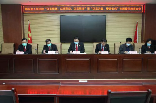 5月13日,靜樂法院召開“堅持黨對司法工作的絕對領(lǐng)導(dǎo)、堅持中國特色社會主義法治道路”專題教育,“以案釋德、以案釋紀、以案釋法”暨“以案為鑒、警鐘長鳴”警示教育動員部署會,院黨組書記、院長呂建文出席會議并講話,院黨組成員和縣紀委監(jiān)委第三派駐紀檢組組長李躍華及全體干警參加會議。院黨組成員、副院長姚亮懷主持。