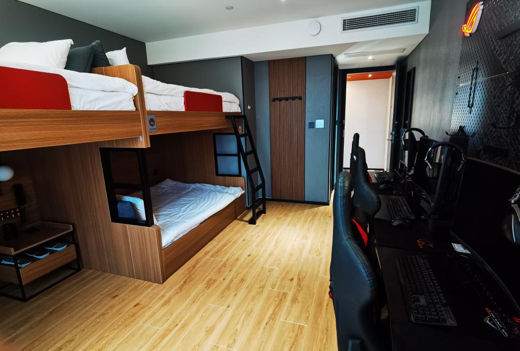 首旅如家酒店集團旗下優(yōu)尼克酒店(YUNIK HOTEL)品牌負(fù)責(zé)人徐俊民介紹,普通酒店單間客房裝修成本為8萬至10萬元,正規(guī)的電競酒店單間客房裝修成本因電腦設(shè)備要求高為10萬至12萬元。因為電競酒店客群黏性較大,在店時間長,零食、飲料、夜宵等二次消費頻繁,投資回報周期更短,近年來成為投資熱點之一。