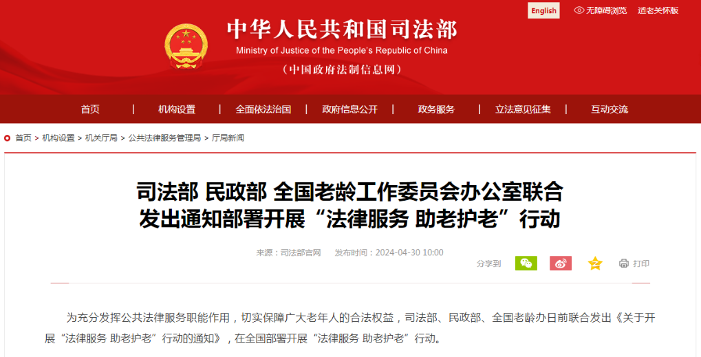 司法部、民政部、全國老齡辦日前聯(lián)合發(fā)出《關(guān)于開展“法律服務 助老護老”行動的通知》,在全國部署開展“法律服務 助老護老”行動。行動聚焦老年人群體公共法律服務需求,推出6個方面措施。