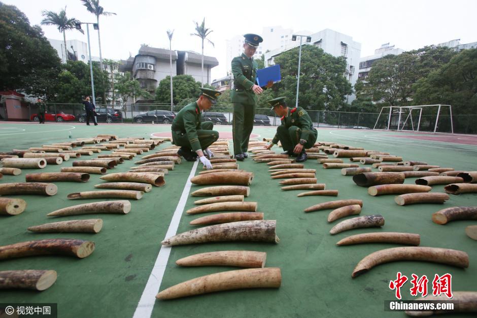 3月21日,廣東公安邊防總隊正式對外通報稱,珠海市邊防支隊成功破獲一起特大涉嫌走私象牙案,查獲走私象牙221塊,共計約450千克,市值1800萬元人民幣,這是近年來全國邊防部門查獲的最大宗走私象牙案。圖片來源:視覺中國
