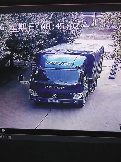 監(jiān)控拍下取貨的廂車,車身無物流公司標(biāo)識(shí)。圖/受訪者供圖