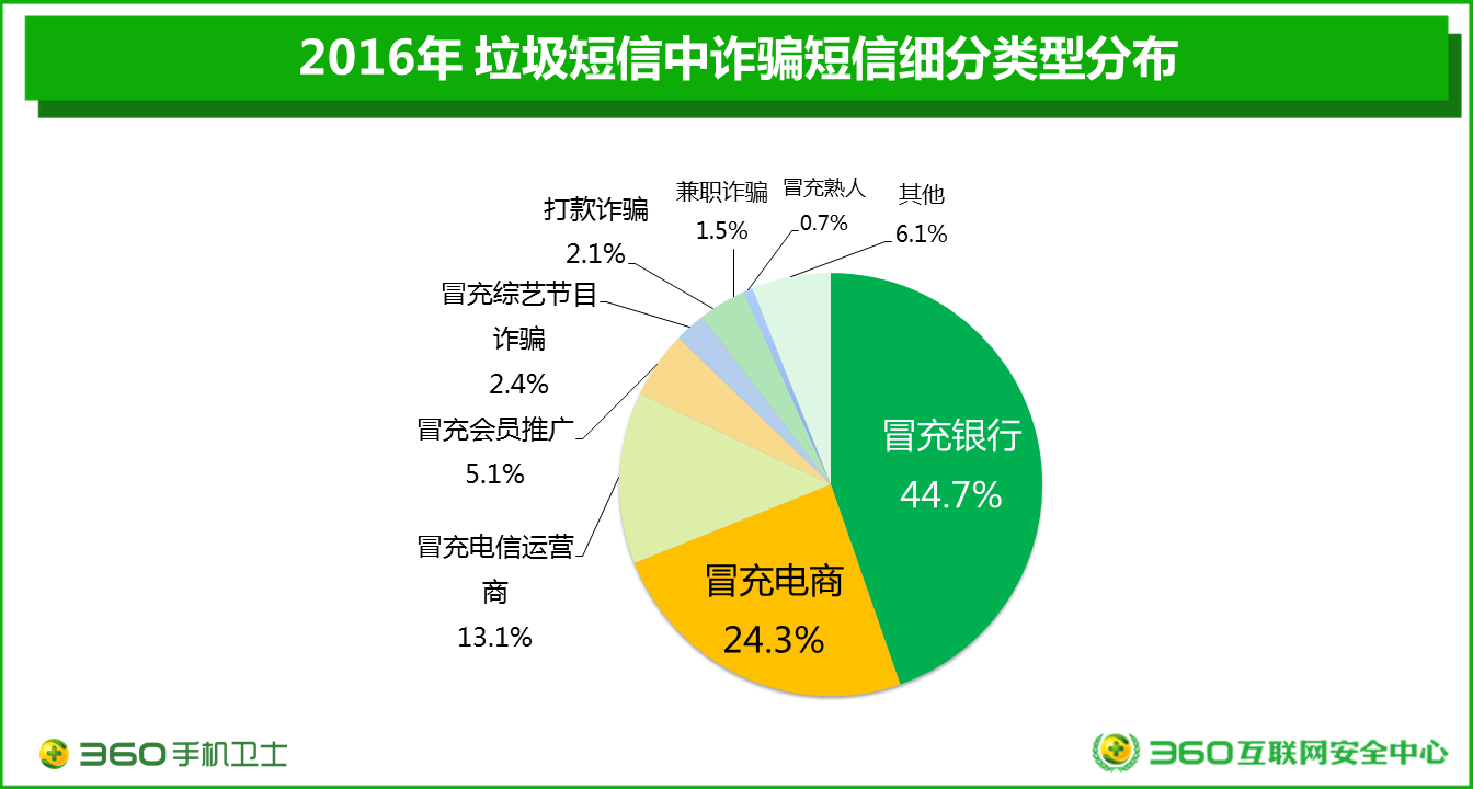 在最危險(xiǎn)的詐騙類短信中,不法分子最愛冒充“官方”。其中,冒充銀行、冒充電商、冒充電信運(yùn)營商成為不法分子心中的TOP3,分別占比44.7%、24.3%、13.1%。隨著技術(shù)和能力的提升,不法分子如今更擅長在詐騙短信中附加短網(wǎng)址,尤其是偽基站發(fā)出的詐騙短信,一旦用戶點(diǎn)擊,很可能緊接著是下載一個(gè)有病毒的安裝包,進(jìn)而掉入騙子的陷阱,最終導(dǎo)致上當(dāng)受騙。