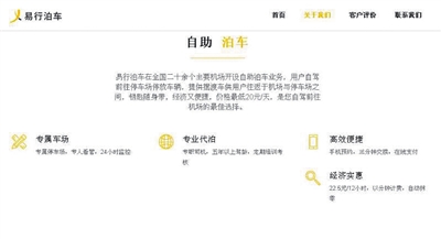易行泊車官網上的自我介紹,稱是“自駕前往機場的最佳選擇”。網絡截圖