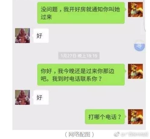 因擔(dān)心“服務(wù)員”的“質(zhì)量”不好,阿強讓“夢醒時分”幫忙挑選一個好一點的“服務(wù)員”。對方 說沒問題,并說將“服務(wù)員”的照片發(fā)給他挑選,覺得哪個合心水就安排哪個過來。想不到對方的服 務(wù)這么好,阿強心里非常興奮。 不過,阿強的興奮很快被氣憤所代替——因為當(dāng)“夢醒時分”從微信上發(fā)過來的女子照片,竟然是阿強在外地打工的老婆!