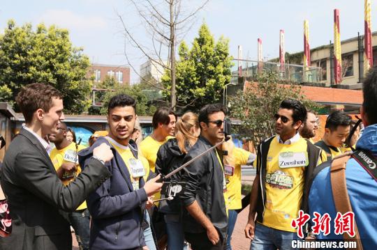 資料圖:網(wǎng)絡(luò)直播與綜藝節(jié)目結(jié)合在一起,嘉賓們?nèi)耸忠恢ё耘臈U,一邊錄制一邊直播。鐘欣 攝