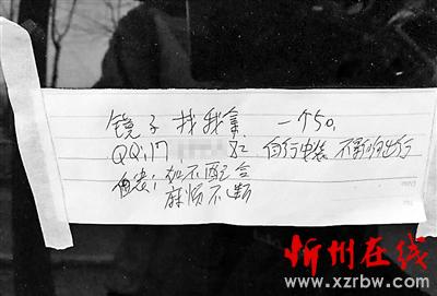 春節(jié)前后,通州警方陸續(xù)接到多名居住在馬駒橋地區(qū)的群眾報警,稱自己停放在家附近的車輛反光鏡被盜,偷反光鏡的人在車上留下了一張紙條,上面寫著“鏡子找我拿”,并留下一個QQ號,十分囂張。