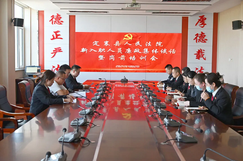 為深入貫徹落實(shí)全面從嚴(yán)治黨、從嚴(yán)治院的工作要求,進(jìn)一步提升定襄法院新入職人員履職盡責(zé)和廉潔司法意識。4月12日上午,定襄法院召開新入職人員廉政集體談話暨崗前培訓(xùn)會,黨組成員、副院長曲正悅、縣紀(jì)委監(jiān)委第九派駐紀(jì)檢監(jiān)察組任琳、政治部及近期新入職人員參加談話。