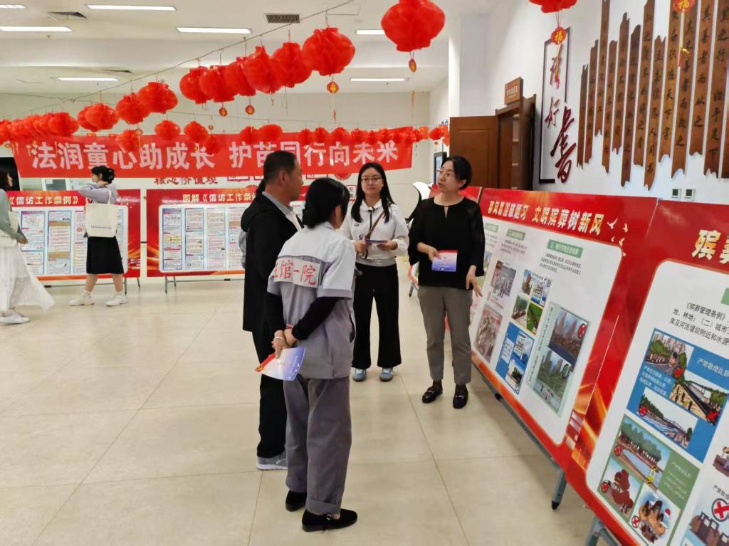 活動現(xiàn)場設(shè)置宣傳展區(qū)、法律咨詢臺,聚焦民法典、信訪、殯葬管理、未成年人保護(hù)等內(nèi)容,通過展板展示、發(fā)放法律宣傳冊和法治宣傳品等形式,引導(dǎo)群眾開啟法治文化探索之旅,打造沉浸式法治宣教地標(biāo)。相關(guān)工作人員以通俗易懂的語言講解法律知識,開展案例互動和法律咨詢,解答群眾關(guān)切問題30余個,讓法治理念潛移默化浸潤心田。