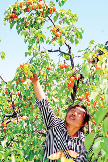 6月15日,原平市新華街村農(nóng)民正在自家杏園采摘,準(zhǔn)備銷往市場。原平市大力發(fā)展一村一品水果種植業(yè),促進(jìn)了農(nóng)民增收。(趙月仁 攝)