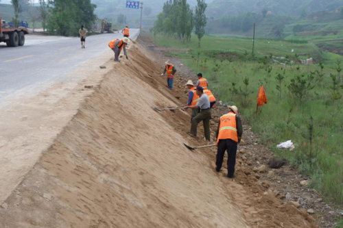 進(jìn)入汛期以來(lái),靜樂(lè)公路管理段將路基邊坡加固作為安全隱患治理,保障公路安全暢通的重要養(yǎng)護(hù)工作來(lái)抓,堅(jiān)持不懈的做好強(qiáng)基固路工作。確保了預(yù)防性、預(yù)警性、安全性養(yǎng)護(hù)三到位,圖為養(yǎng)路工正在培土加固邊坡。(李永珍 攝)