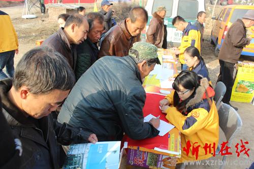 11月29日,原平市聚農(nóng)豐肥料合作社在農(nóng)貿(mào)市場擺攤推銷肥料。入冬以來,該合作社充分利用鄉(xiāng)下農(nóng)貿(mào)市場趕集的機會,帶著各種肥料的宣傳資料,現(xiàn)場與農(nóng)民對接簽訂免費送肥合同,受到農(nóng)民歡迎。(曹申義 攝)