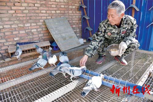 鐵礦老板柳國榮、高建峰于去年1月返鄉(xiāng)創(chuàng)辦了投資300萬元的代縣雁門順峰信鴿養(yǎng)殖場。該場每年消耗飼料高粱、玉米、豌豆等20多噸,可有效帶動當(dāng)?shù)氐男‰s糧種植,助推貧困農(nóng)民脫貧增收。圖為飼養(yǎng)員正在喂養(yǎng)信鴿。(石俊文 攝)