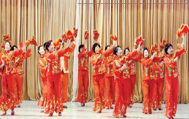 近日,原平市舉行群眾新年文藝聯(lián)歡活動(dòng),來(lái)自社區(qū)、鄉(xiāng)村、小區(qū)的25支群眾文藝社團(tuán)通過(guò)大合唱、廣場(chǎng)舞、雙人舞、扇子舞、男女聲二重唱、戲曲、旗袍秀、秧歌舞、拉丁舞、水兵舞等多種多樣的表演形式,齊頌祖國(guó)好,齊夸祖國(guó)興旺發(fā)達(dá)的喜人局面和人民幸福安康的好光景。圖為北城京原社區(qū)舞蹈隊(duì)正在表演廣場(chǎng)舞《紅紅火火大中華》(藺紅 褚震 攝)