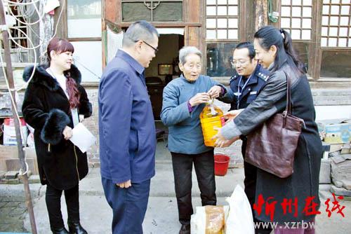 本報訊 11月15日,忻州監(jiān)獄與忻府區(qū)秀容辦西街社區(qū)結(jié)對,開展志愿服務(wù)活動,對社區(qū)困難戶、孤寡老人進(jìn)行了走訪慰問,為他們送上面粉、大米、食用油等慰問品。志愿者們關(guān)切地詢問他們的生活情況、身體狀況,并叮囑老人天氣寒冷要注意防寒保暖、出入安全。志愿者們告訴他們,平時遇到困難時,要及時給社區(qū)居委會打電話,工作人員會竭盡所能解決問題。