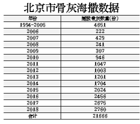 目前,以骨灰海葬、骨灰自然葬為代表的節(jié)地生態(tài)葬式已成為北京市骨灰安葬的主流。本市骨灰海葬活動自1994年實施以來,迄今已順利組織了485次,播撒骨灰21666份,服務(wù)逝者家屬67887人次,僅2018年就組織骨灰撒?;顒?0批次,播撒骨灰2760份,參加活動家屬11160人,在全國居于領(lǐng)先地位?!笆濉蹦腔液T崃款A(yù)計將達(dá)到北京市年火化總量的4%。