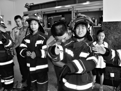 “叔叔,這是干什么用的?” 樂(lè)樂(lè)拿起一個(gè)面罩轉(zhuǎn)了幾圈?!斑@個(gè)叫防毒面具,可以防止毒氣、煙霧進(jìn)入鼻子和嘴巴。”一名消防員戰(zhàn)士告訴樂(lè)樂(lè),在發(fā)生火災(zāi)時(shí),為了防止毒氣、煙霧吸入口中,小朋友們可以用濕毛巾代替,把濕毛巾對(duì)折捂住嘴巴和鼻子。“毛巾打濕后最好稍微擰一下,讓毛巾不滴水,這樣防毒的效果最好?!?/p>