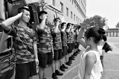 在朝陽(yáng)區(qū)公安消防支隊(duì)左家莊消防中隊(duì),樂(lè)樂(lè)在“北京少年兒童消防嘉年華”活動(dòng)中,第一次撥打了火警電話。