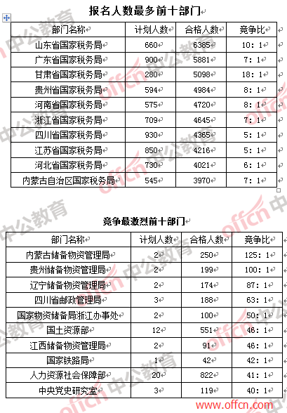 部門:報名人數(shù)前十均被國稅“拿下”