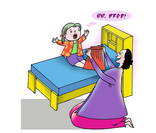 對(duì)于孩子不會(huì)做的事情,大人要教給他正確的方法,可以通過游戲的形式讓他完成,如將穿衣的方法編成一首兒歌,“抓領(lǐng)子,蓋房子,小老鼠,出洞子,吱溜吱溜上房子。”讓孩子在朗朗上口的兒歌中學(xué)會(huì)穿衣,以此調(diào)動(dòng)他動(dòng)手的興趣,更好地體驗(yàn)成功的快樂!