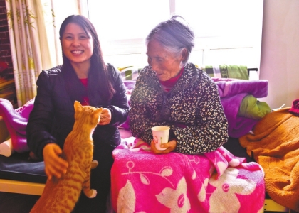 劉琳輕輕推開門,朝里張望,奶奶正在睡覺,窩在奶奶懷里的貓豎起耳朵,一直看著她。這只貓叫“鐺鐺”,劉琳去學(xué)校上課的時(shí)候,就只有鐺鐺陪著奶奶。坐在床沿,看著睡夢中的奶奶,劉琳露出了微笑。